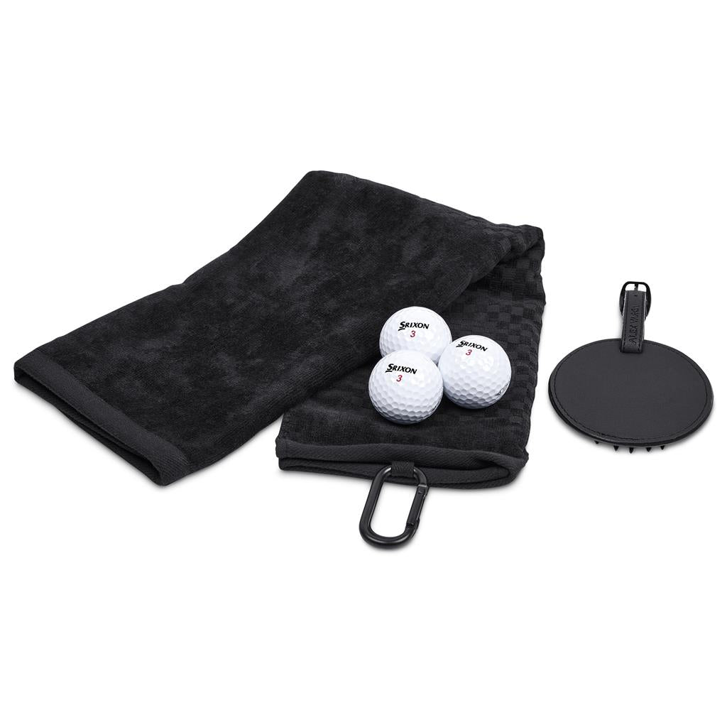 This premium golf gift set is an ideal choice for corporate gifting and golf events. The set includes an Alex Varga cotton golf towel and premium PU golf tee tag holder that accommodates five tees, presented in a two‑piece presentation box. Each set is completed with a sleeve of three golf balls, allowing the recipient to select the option best suited to their performance preferences and budget. A sophisticated and functional gift set designed to appeal to golfers of all levels while delivering excellent perceived value. The range is offered in a structured good, better, best pricing tier, providing a clear choice and flexibility: Good: Srixon Distance golf balls Better: Srixon AD333 golf balls Best: Titleist Pro V1 golf balls This gift set includes:Alex Varga Addy Medium Golf Box 28.5 ( l ) x 28.5 ( w ) x 4.5 ( h ) cm black two-piece box Alex Varga Arcadia Tri-Fold Golf Towel 56 ( l ) x 40 ( w ) cm 100% cotton 580g/m2 Alex Varga Quinta Golf Tees & Tag Holder 15 ( l ) x 9.5 ( w ) cm PU leather includes five Tees Choice of Golf Balls: Srixon Distance golf balls sleeve of 3...