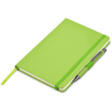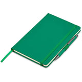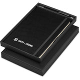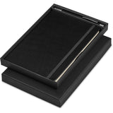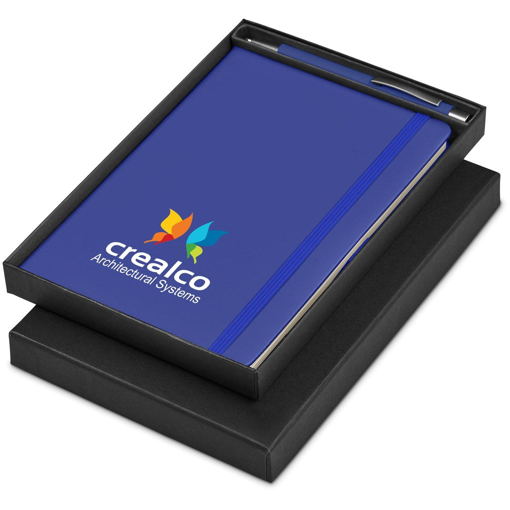 A popular A5 hard cover notebook is paired with a popular metal ball pen in a black, 2-piece, solid gift box. The box is 23.8 ( l ) x 15.9 ( w ) x 2.4 ( h ) cm This gift set includes:
